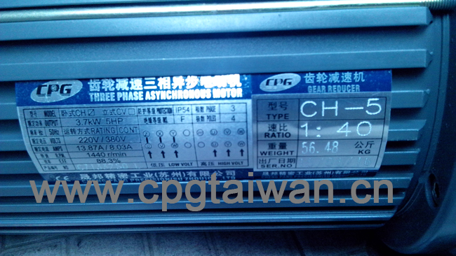 ---->臥式齒輪減速馬達CH3700-40S-G3 的電壓為三相220V/380V 50HZ