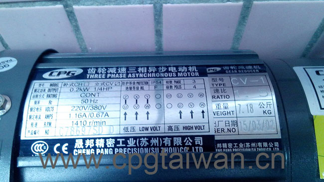 ---->立式減速電機CV200-5S 的電壓為三相220V/380V 50HZ