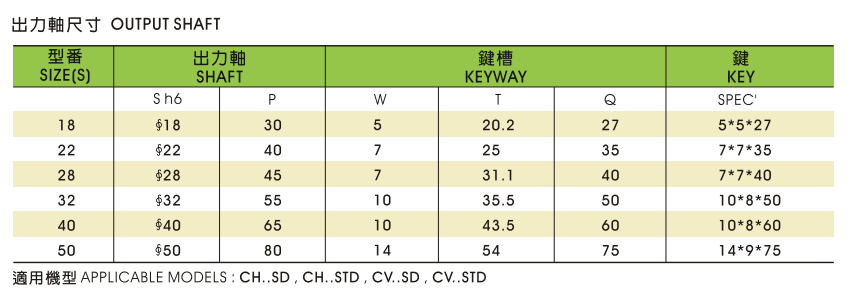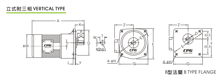 (一)下圖為標準型CV..SD立式附三相鋁殼齒輪減速馬達尺寸參數: