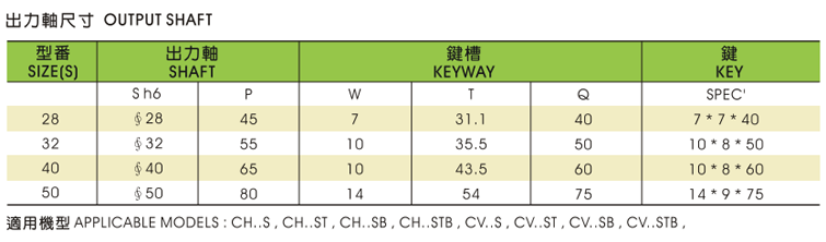 cpg減速電機(jī)CH..SZ(B) 系列詳細(xì)參數(shù):